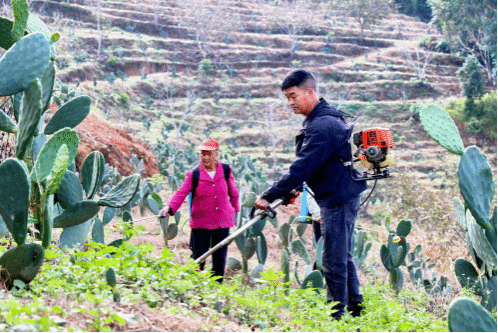 技术共享,培育产业新军。随着仙人掌产业效益显现,当地群众种植热情高涨。在企业的技术指导和资源扶持下,酒房村村民李从兴等人开始自主发展仙人掌种植,目前个人种植规模已达10亩。这种“企业带动+农户参与”的模式,既丰富了群众的种植技术,又拓宽了增收路子。目前,全镇仙人掌种植规模已突破500余亩,产品远销四川、广东等地,年产值约100万元,预计3-4年后进入高产期,效益将实现倍增。