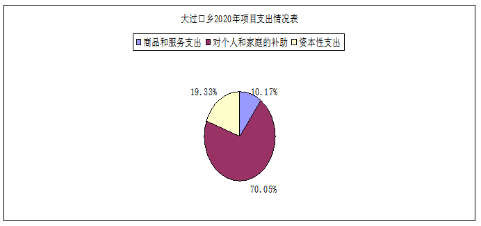 2020年度用于保障楚雄州楚雄市大过口乡机构、下属事业单位等机构为完成特定的行政工作任务或事业发展目标,用于专项业务工作的经费支出1720.63万元。与上年对比减少49.64万元,主要原因是脱贫攻坚工作已接近尾声,脱贫攻坚建设项目减少,项目资金减少。包括商品和服务支出174.93万元占比10.17%,对个人和家庭的补助1213.1万元占比70.5%,资本性支出332.60万元占比19.33%。