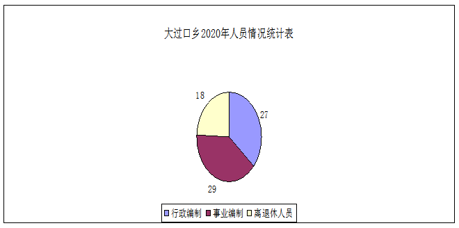 楚雄州楚雄市大过口乡部门2020年末实有人员编制74人。其中:行政编制32人(含行政工勤编制6人),事业编制42人(含参公管理事业编制4人);在职在编实有行政人员27人(含行政工勤人员6人),事业人员29人(含参公管理事业人员29人)。