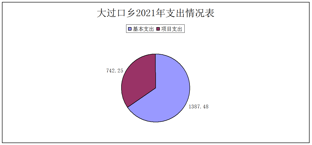 楚雄州楚雄市大过口乡部门2021年度支出合计2,129.73万元。其中:基本支出1,387.48万元,占总支出的65.15%;项目支出742.25万元,占总支出的34.85%;上缴上级支出、经营支出、对附属单位补助支出共0.00万元,占总支出的0.00%。本年与上年对比基本支出增加7.01万元,增加0.51%,主要原因是本年实有人数增加,人员经费增加;本年与上年对比项目支出减少978.38万元,下降56.86%,主要原因是脱贫攻坚工作已完成,基础设施建设项目减少,项目资金减少。