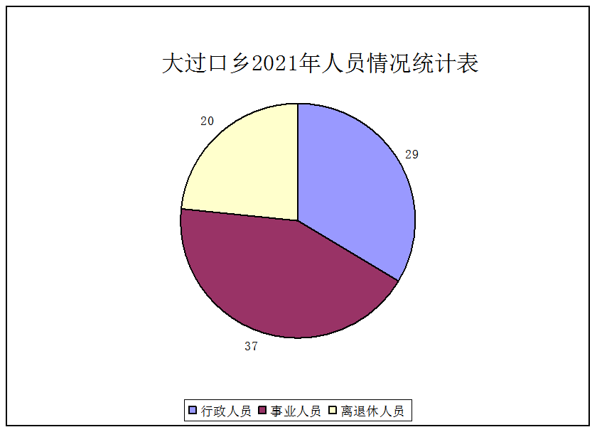 楚雄州楚雄市大过口乡部门2021年末实有人员编制80人。其中:行政编制32人(含行政工勤编制0人),事业编制48人(含参公管理事业编制4人);在职在编实有行政人员29人(含行政工勤人员5人),事业人员37人(含参公管理事业人员2人)。