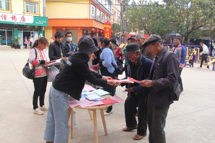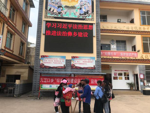 为深刻学习领会党的十九届五中全会、中央全面依法治国工作会议精神和习近平法治思想的精神实质和丰富内涵,在全乡形成尊法、学法、守法、用法的浓厚氛围,为法治彝 乡建设提供坚强保障。3月4日,大过口乡利用街天赶集日契机,组织司法所、综治办、文旅中心等职能站所在文化广场开展以“学习习近平法治思想,推进法治彝 乡建设”为主题的习近平法治思想户外宣传活动。
