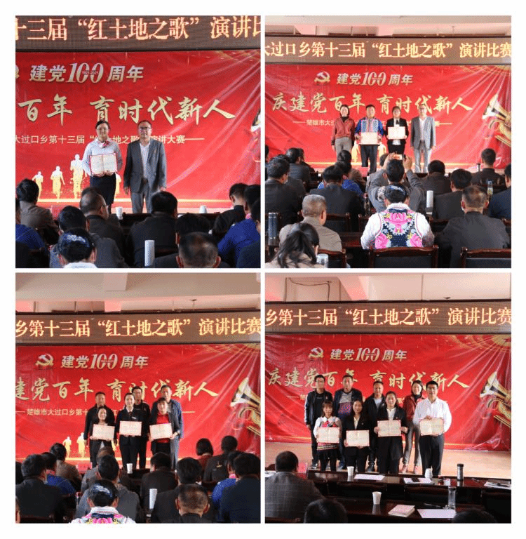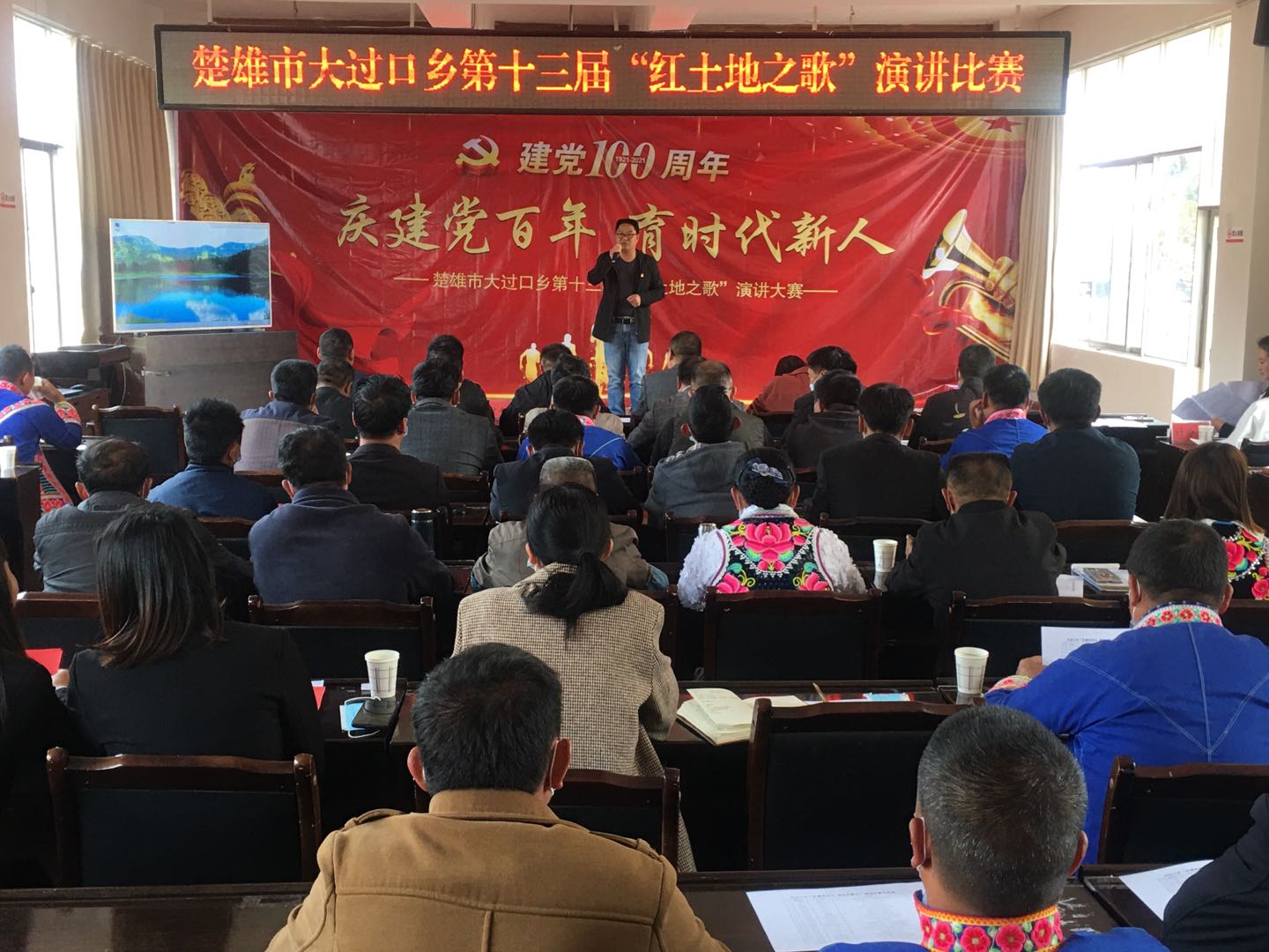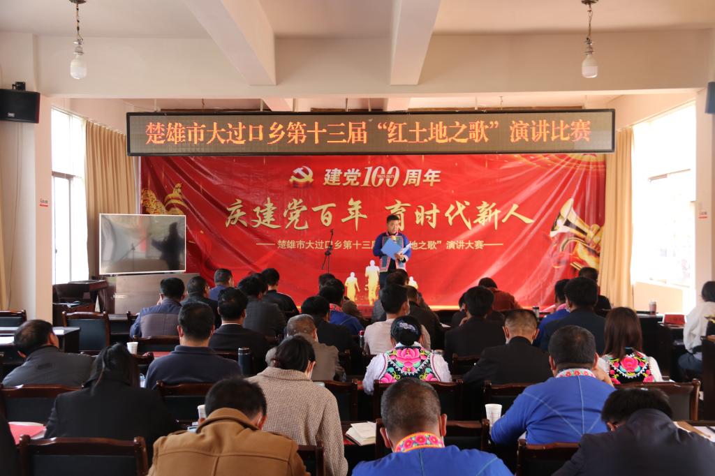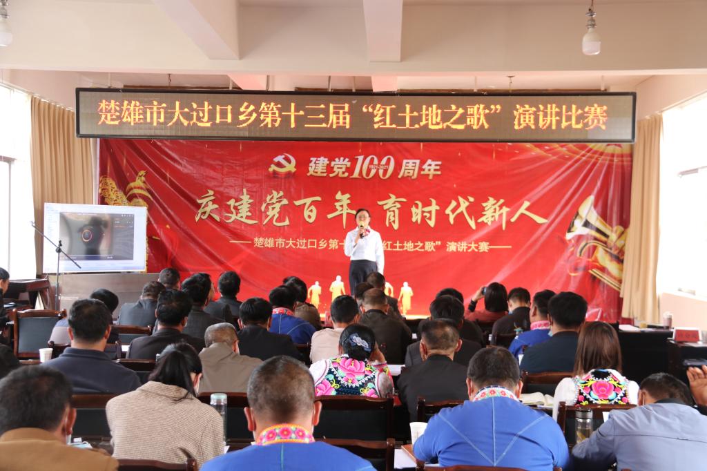 为认真贯彻落实市委宣传部、市文明办、市委教育工委、市总工会、团市委、市妇联《关于举办楚雄市第十三届“红土地之歌”演讲大赛的通知》精神,大过口乡紧紧围绕庆祝中国共产党成立100周年这条主线,于2021年3月25日开展第十三届“红土地之歌”演讲比赛活动。