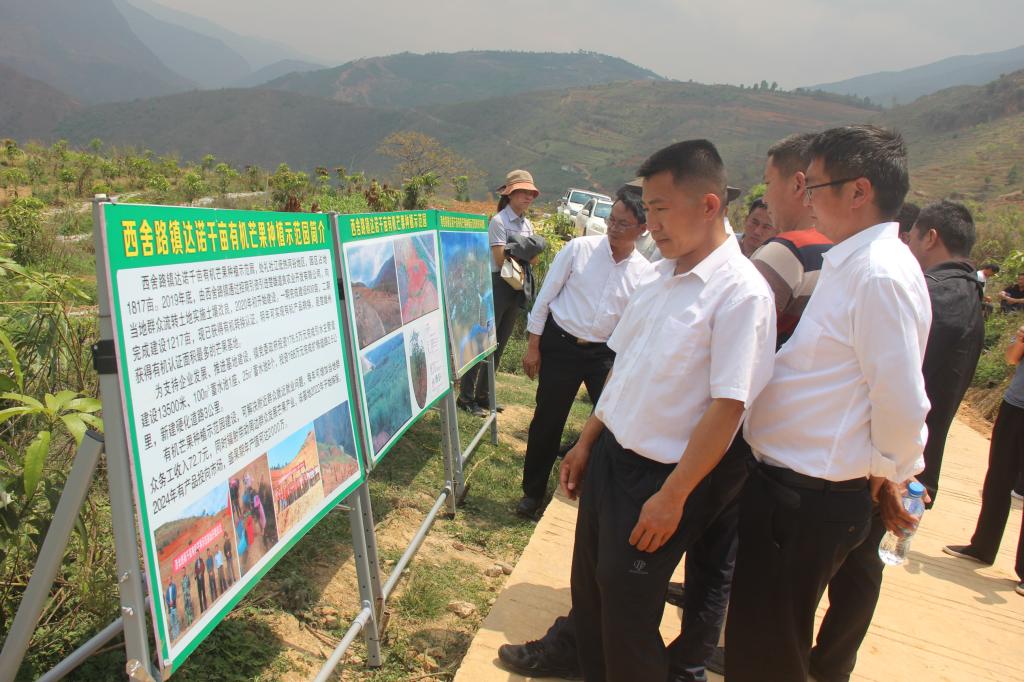 (代表认真视察调研达诺千亩有机芒果种植示范园)