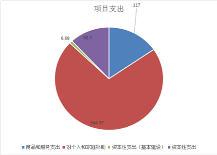 2018年度项目支出主要用于保障行政机关、各中心、站所等机构为完成特定的行政工作任务或事业发展目标,用于专项业务工作的经费,2018年项目支出759.35万元,占总收入38.5%;主要是商品和服务支出117万元;对个人和家庭补助支出544.97万元;资本性支出97.38万元。