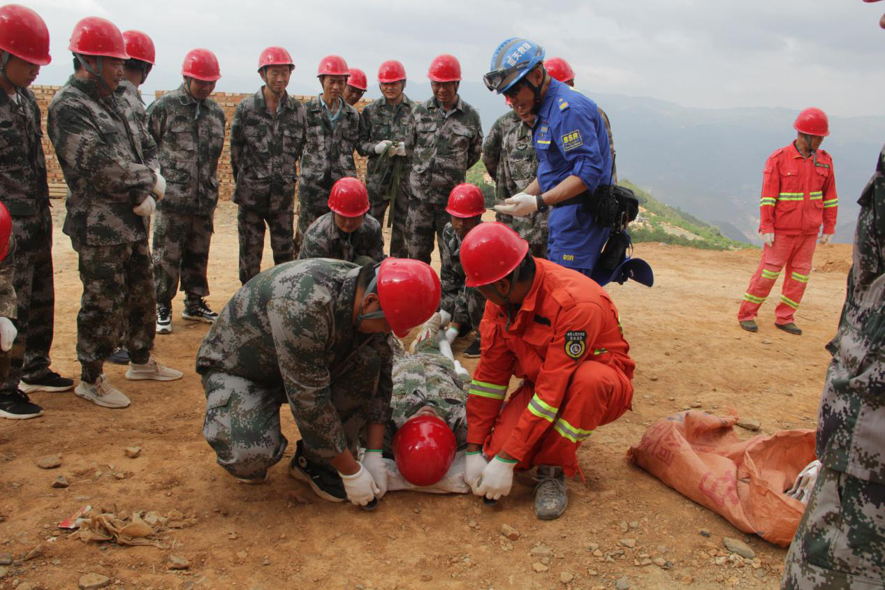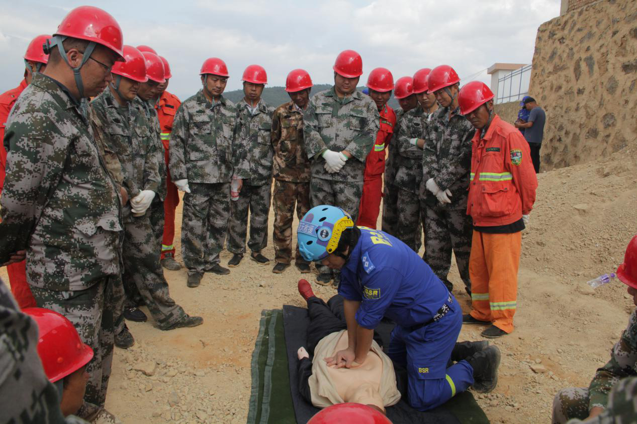 八角镇人民政府60名应急民兵开展地震应急第一响应人培训,蓝天救援队老师采用现场教学的方式,对心肺复苏、止血包扎、简易担架制作、伤员转运(单人转运、多人转运)及地震搜救5项内容开展培训,培训过程中理论结合实操,内容丰富实用、通俗易懂。