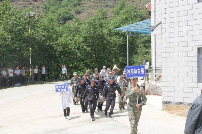 此次演练,从监测员日常监测发现地质灾害险情开始、逐渐上报、发出预警信号、组织群众疏散转移、启动应急预案等多个环节持续40多分钟。设立抢险救灾组、维护社会稳定组、医疗救护防疫组、应急救助与灾情统计组、应急调查监测组和基础设施损毁调查和恢复组6个专项组,组织农干部职工、农户100余人参与。