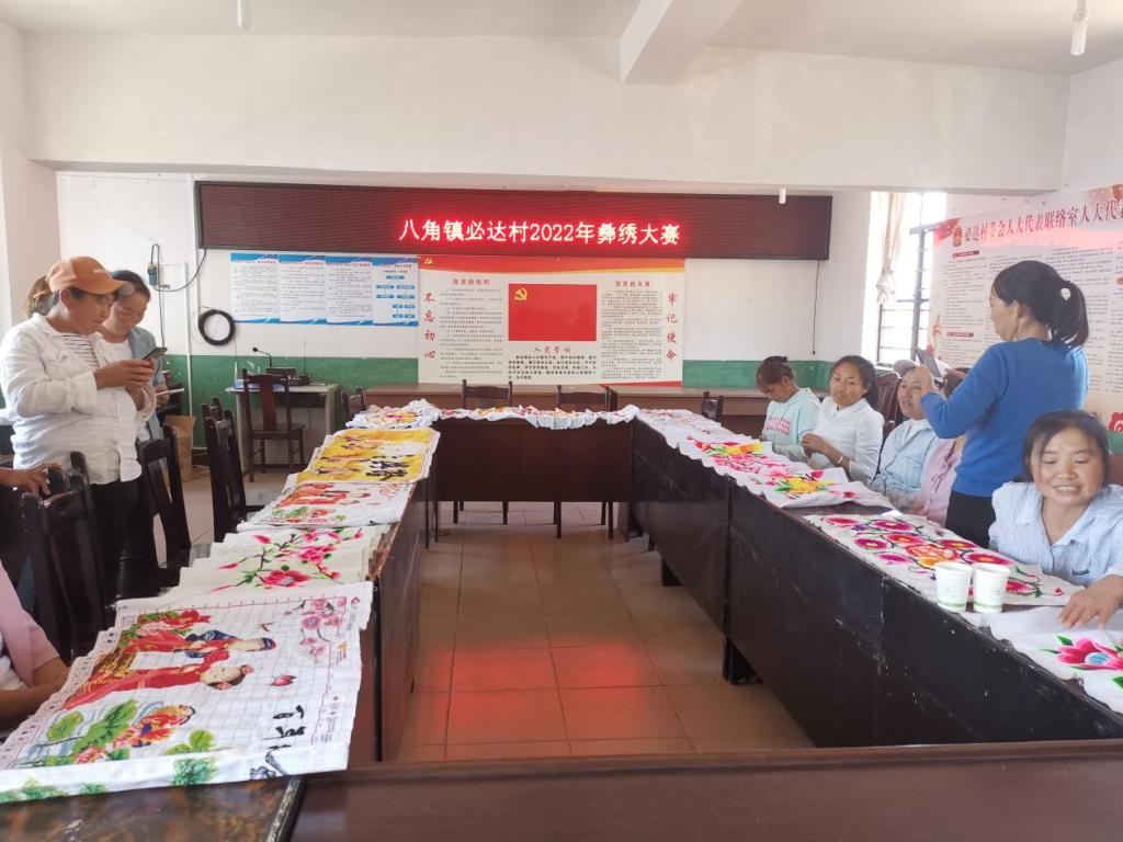必达村开展彝秀比赛,各位参赛选手用巧手秀出美丽的花朵、传承着传统文化,为节日增添靓丽的色彩。