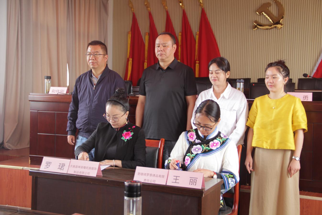 楚雄绮罗香绣品有限责任公司与大姚县咪依噜民族服饰制品有限公司签订战略合作协议书。