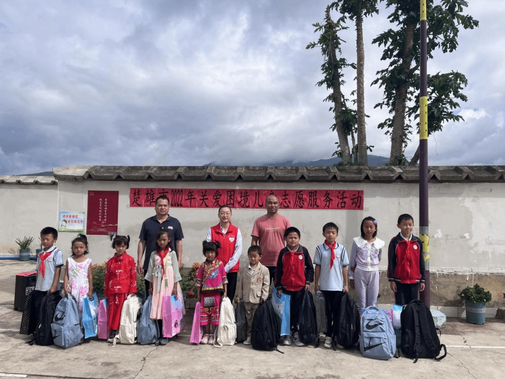 在进行了少先队员入队仪式、颁奖典礼之后,八角镇妇联对庄房完小开展关爱困难儿童志愿服务活动,为庄房小学10名困境儿童送上由楚雄市妇联提供的慰问品书包、作业本、橡皮泥等10多类文具,让孩子们感受到党和妇联的关心,让孩子们过一个温暖的六一。