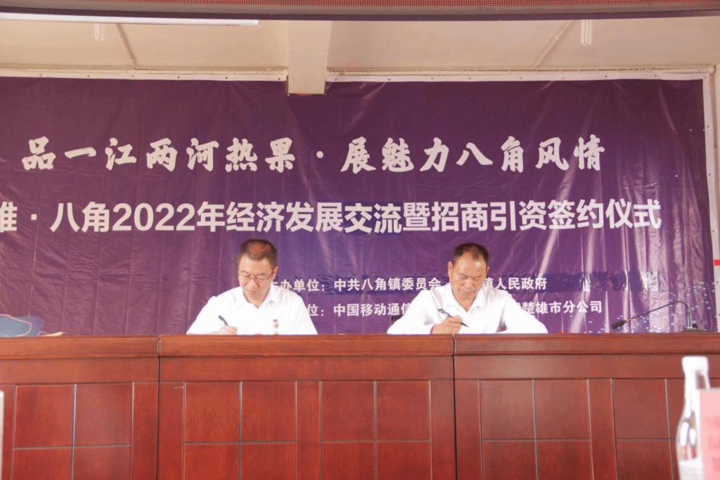 二是汇聚发展活力,招商引资成功签约。以热果展销节的契机,邀请市级相关部门、周边乡镇以及16家企业和合作社共60余人召开经济发展交流会,对八角镇未来的发展规划提出了18条意见和建议,镇政府与云南楚雄市农村商业银行股份有限公司等五家企业签订战略合作框架协议,各行业精英相聚一堂,共谋八角发展之策。