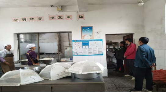 检查人员现场察看了学校食品经营许可证和健康证,食品采购索证索票等证件,仔细查验了学校食堂防蝇防尘防鼠设施、消毒设施、加工场所、加工过程、从业人员的个人卫生以及蔬菜肉类、食品加工半成品、调料品和米面油贮存情况,同时针对每所学校食堂存在的不足提出整改意见并督促立即整改落实。