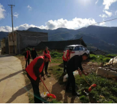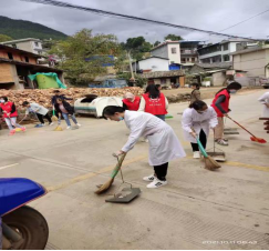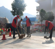 在五街集镇和五街河,志愿者们身穿红马甲,手拿扫帚、铁锨等卫生清洁工具,清扫路面和公共设施附近的垃圾,清理墙面乱贴乱画,拾取河道杂物,保护河道生态环境。