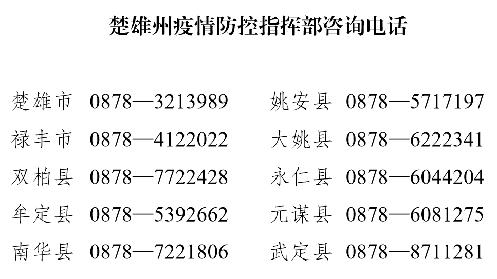 一、所有州外来(返)楚人员在入楚前,须提前24小时通过“威楚报备”小程序或电话方式向目的地县市、乡镇、社区或单位进行报备。
