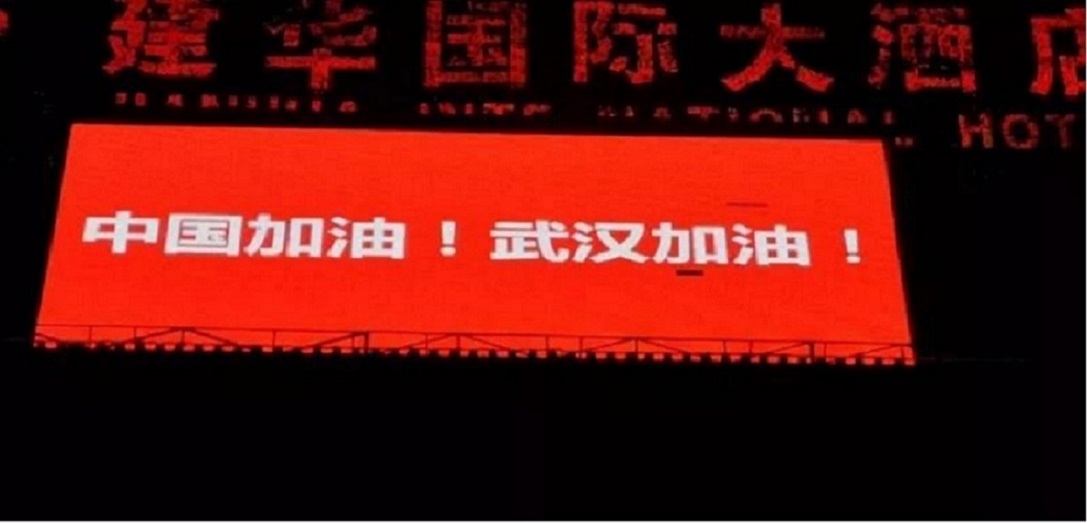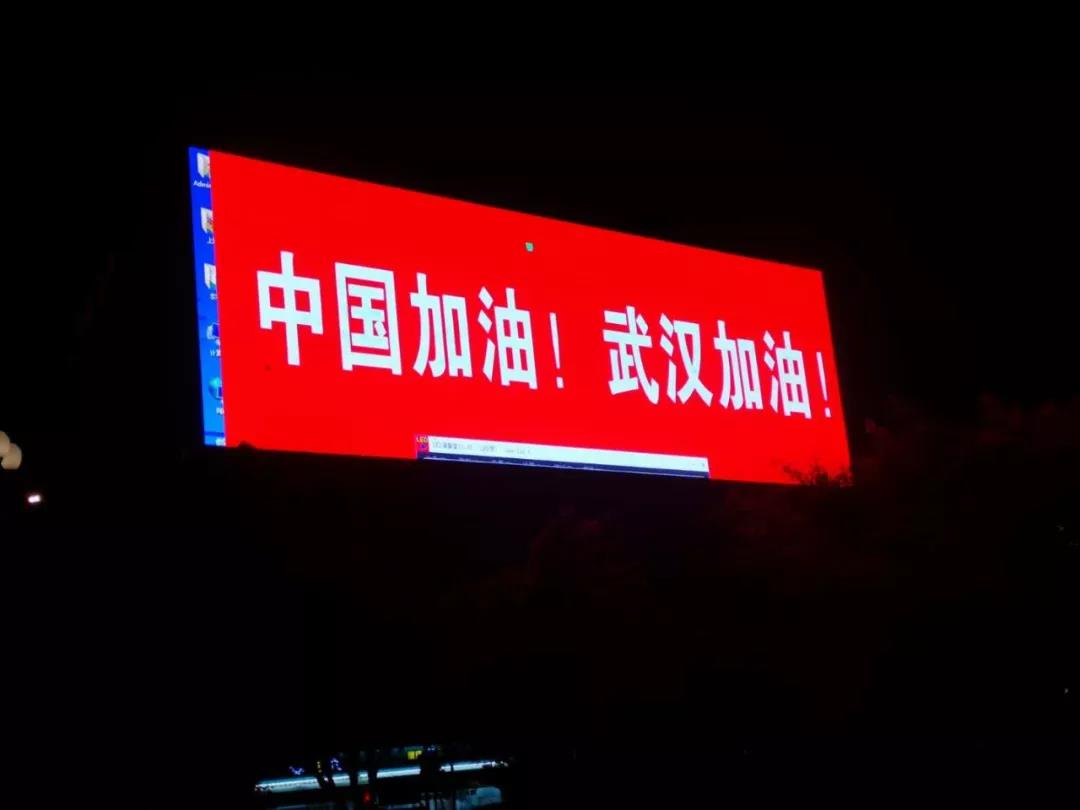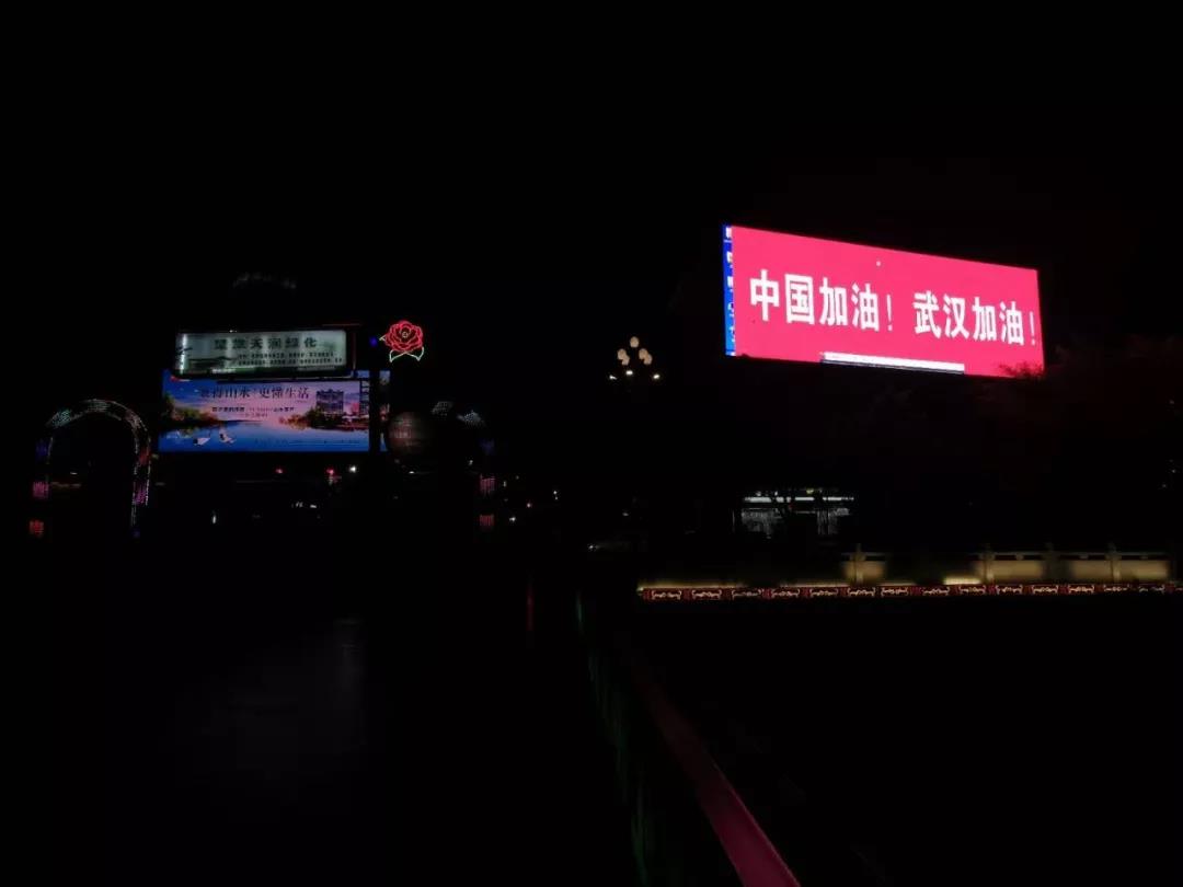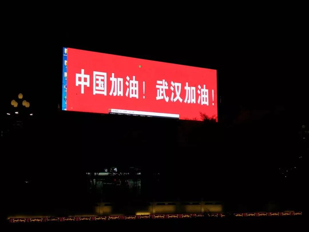 从桃源湖到开发区市民广场,从明珠百货到开发区管委会,“中国加油,武汉加油”不仅亮在大屏上,也亮在人们心中,点亮大家抗疫的希望,鼓舞大家抗疫的信心。