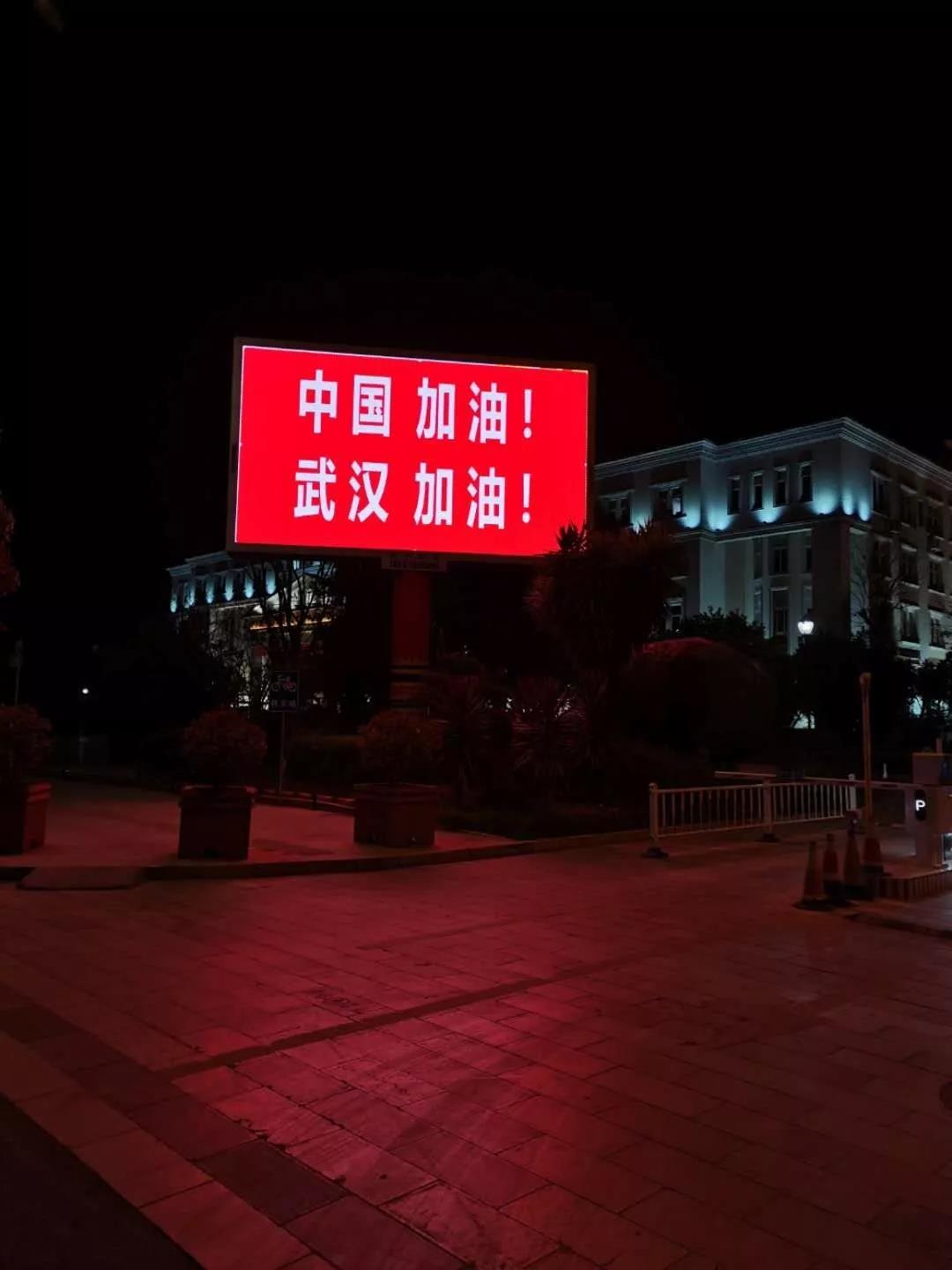 2月8日晚上,在元宵节之夜,为宣传发动广大市民群众全力以赴战胜疫情,楚雄市城区30余块大屏同步亮灯,为战胜新冠肺炎疫情加油鼓劲。