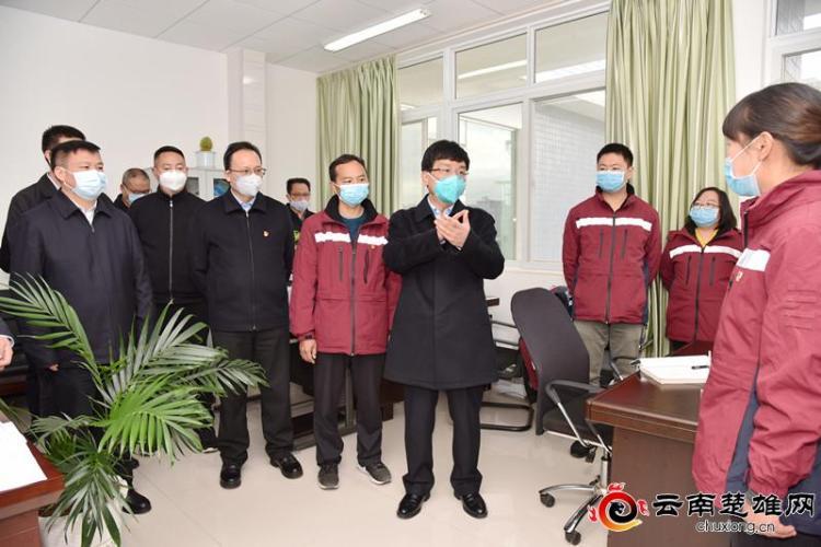 州委书记杨斌,州委副书记、州长迟中华率队在楚雄市疾病控制中心实地检查疫情防控工作并慰问一线医务工作者。(记者王洪摄)