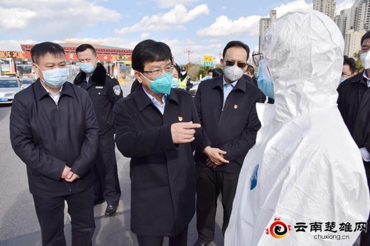 州委书记杨斌,州委副书记、州长迟中华率队在楚雄站实地检查疫情防控工作。(记者王洪摄)