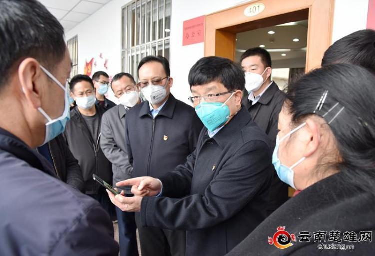 州委书记杨斌,州委副书记、州长迟中华率队在楚雄州卫生健康委实地检查疫情防控工作。(记者王洪摄)