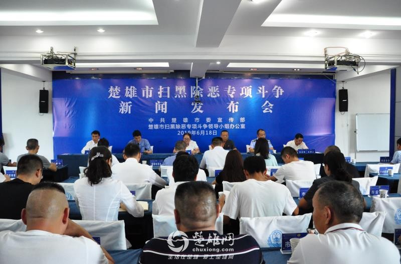 6月18日上午,楚雄市扫黑除恶专项斗争新闻发布会在楚雄市公安局召开。新闻发布会以主发布和答记者问方式进行,由市委政法委主发布,市委宣传部、市人民法院、市人民检察院、市公安局、市司法局联合发布。