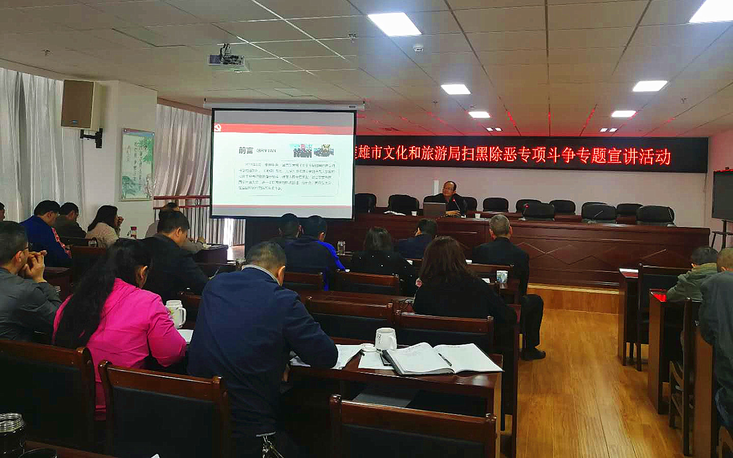 为推动楚雄市文化和旅游局扫黑除恶专项斗争向纵深发展,统一思想,切实增强干部职工做好扫黑除恶专项斗争的责任感和使命感。3月25日上午,楚雄市文化和旅游局邀请楚雄市委党校讲师杨成彪开展扫黑除恶专项斗争专题宣讲。