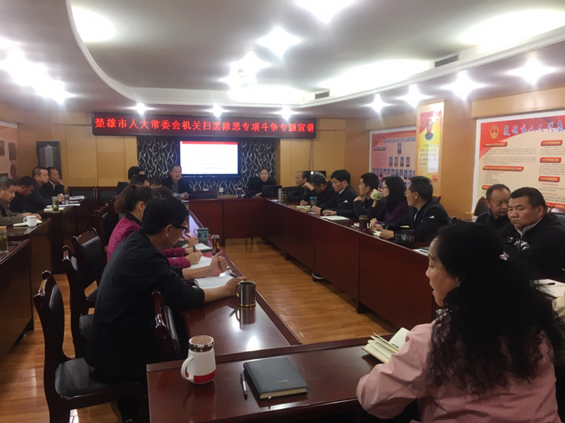 为切实提高市人大常委会机关干部对扫黑除恶专项斗争重大政治任务的认识,推动扫黑除恶专项斗争深入开展,市人大常委会机关于2019年3月20日下午,邀请市委党校高级讲师李雪梅进行了扫黑除恶专项斗争专题宣讲。