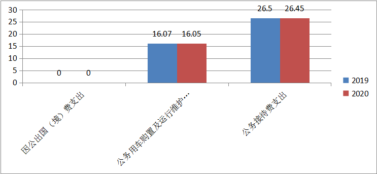 2020年度一般公共预算财政拨款“三公”经费支出决算中,因公出国(境)费支出0万元,占0%;公务用车购置及运行维护费支出16.05万元,占37.78%;公务接待费支出26.45万元,占62.22%。具体情况如下:
