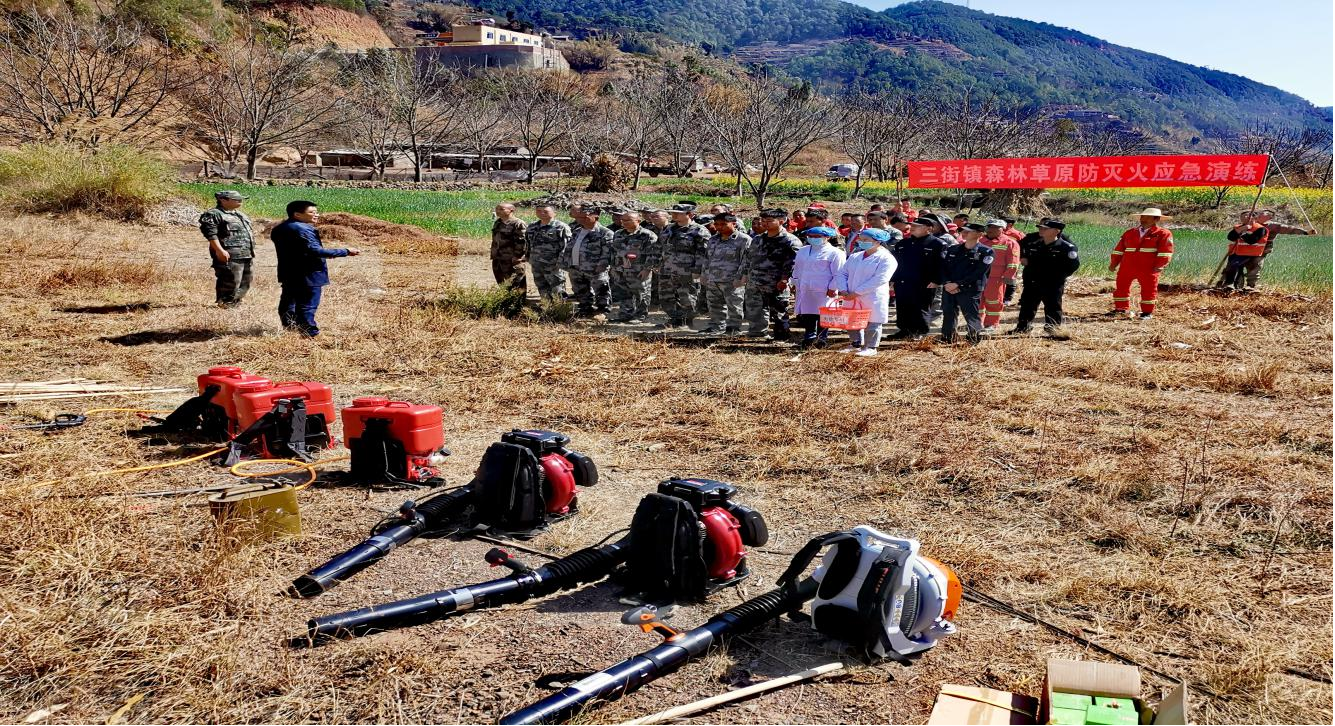 为认真贯彻落实“预防为主、防灭结合”的森林草原防灭火工作方针,提升有效预防与自救能力,切实提高三街镇专业扑火队及应急队伍对森林草原火灾快速处置反应和科学安全扑救森林火灾的能力,提高应急预案的科学性、实用性和可操作性,2023年2月10日,三街镇开展专业扑火队员及应急队伍全要素对森林草原防灭火应急演练。