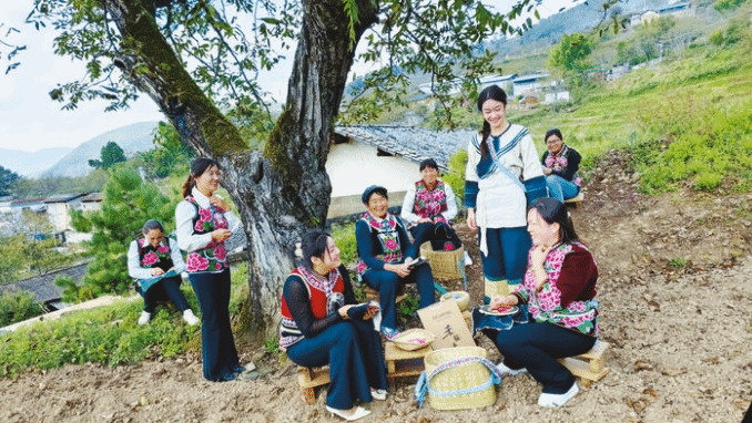 成香彝绣坊里熙熙攘攘地站满了前来挑选绣品的客人,罗成香一边忙着为客人挑选心仪的绣品,一边招呼前来交售绣片的绣娘。从个人爱好到带动绣娘增收致富,罗成香成了“指尖技艺”向“指尖经济”转化的代表之一。