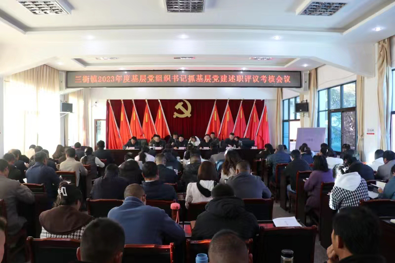 为深入学习贯彻习近平新时代中国特色社会主义思想和党的二十大精神,强化基层组织主体责任、推动党组织书记更好履行抓党建“第一责任人”职责,不断夯实基层党建工作走深走实。1月9日,三街镇召开了2023年度基层党组织书记抓基层党建述职评议考核会议,镇党委书记李志海主持会议并作点评讲话,镇党政班子成员、各办公室、中心、站所全体干部职工、11个村党总支书记、副书记,村委会主任、副主任以及村监委主任共100余人参加了此次会议。
