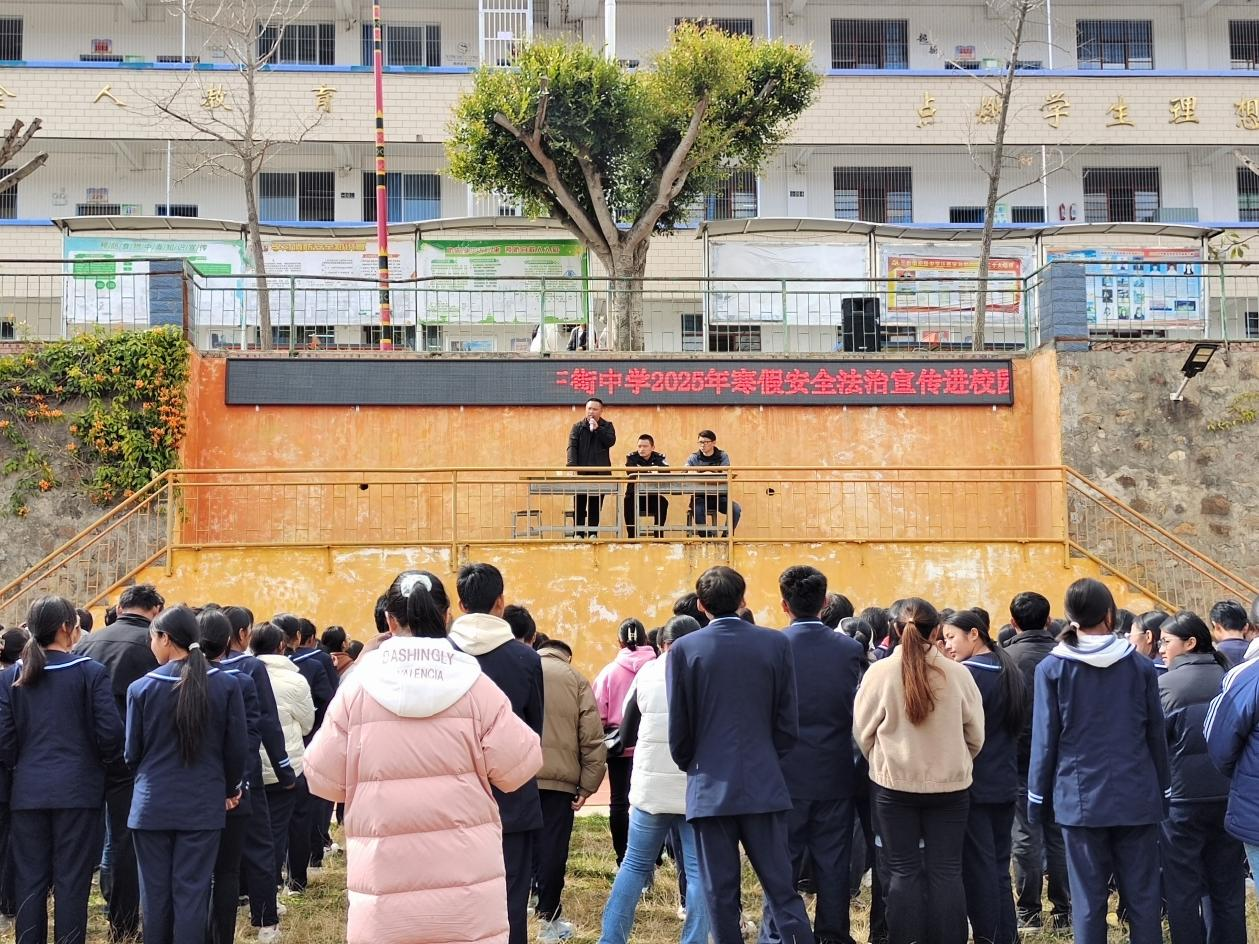 寒假将至,为进一步提高全镇未成年人的安全防范意识,强化家长及教师对未成年学生的安全管理和教育责任,有效预防和遏制未成年学生安全事故和违法犯罪的发生,1月10日,三街镇普法办在三街中学学生放寒假离校之前,组织全校师生和学生家长开展法治宣传进校园活动,帮助未成年学生上好离校法治课,确保寒假“安全”不放假。