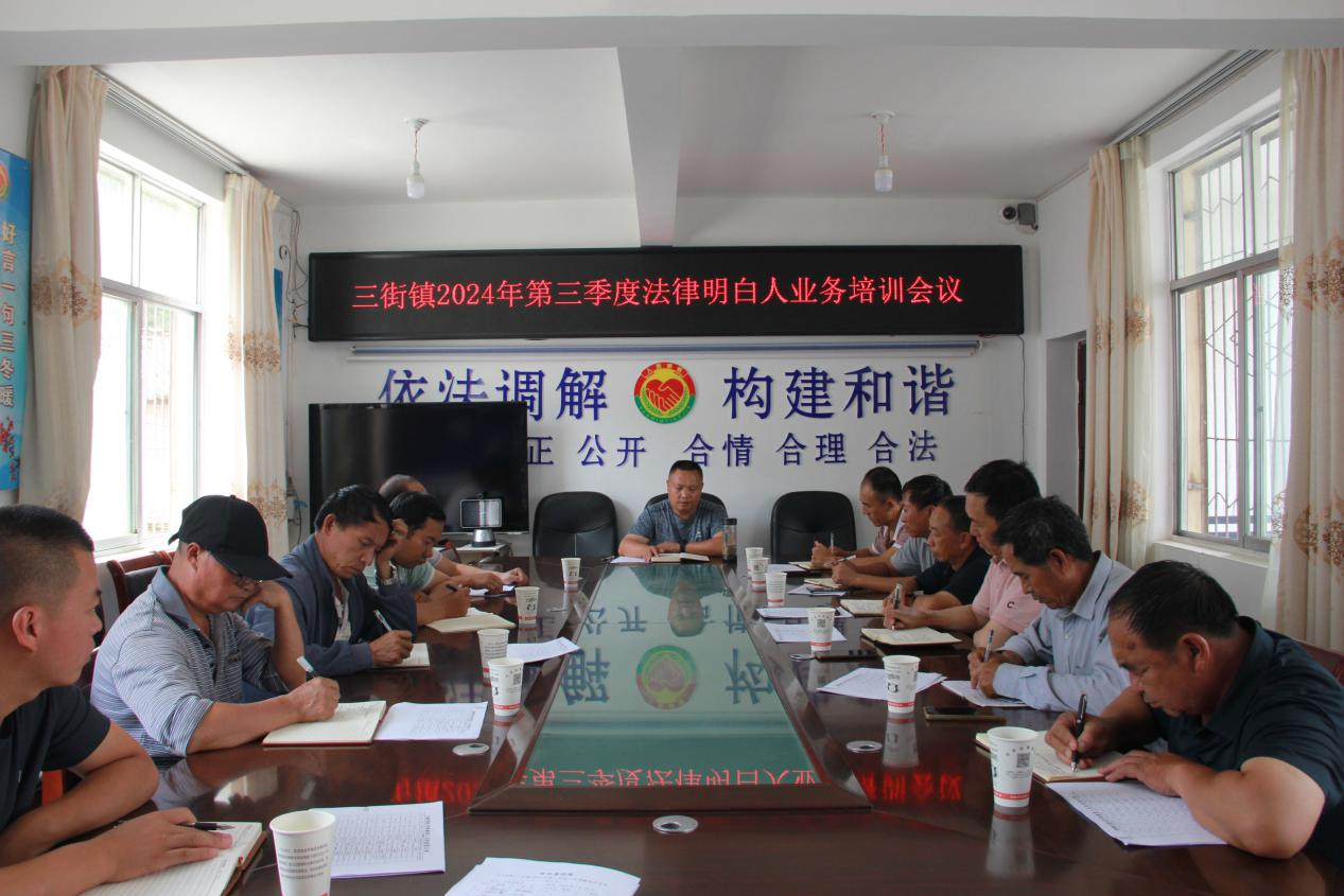 7月23日,三街镇召开了2024第三季度法律明白人业务培训会议,司法所全体工作人员、11个村委会法律明白人、普法骨干参加了会议。