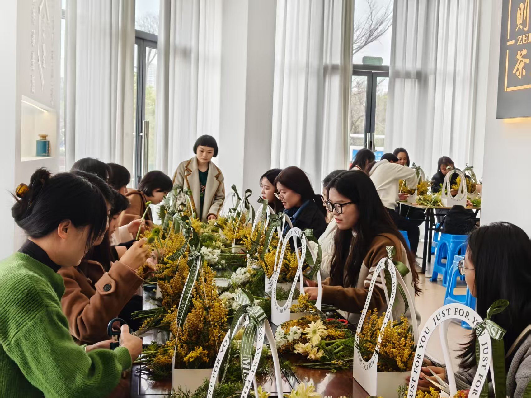 花香盈室,尽显“她”风姿。插花活动现场,花香弥漫,气氛温馨,桌上摆满了各色鲜花和插花工具。老师耐心指导,为大家详细讲解花卉的种类、特性以及插花的技巧和造型设计,从花枝的修剪到色彩的搭配,大家聚精会神地聆听学习。 “看看我的花插在这个位置怎么样?”大家相互沟通,交流心得,享受着插花带来的轻松与欢乐,现场充满了欢声笑语。不一会儿,一束束独具匠心、精美绝伦的插花作品逐渐呈现在大家眼前。