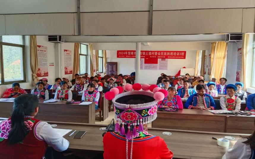 “党建红”引领“彝绣彩”,三街镇坚持“把支部建在产业链上”,成立三街刺绣党支部,支部充分发挥桥梁纽带作用,积极与外界沟通联系,为绣娘提供市场信息、渠道拓展、产品销售等服务,帮助绣娘解决生产经营中遇到的困难和问题;挖掘、培养彝族文化传承人和绣艺骨干,将优秀绣娘发展为党员,持续壮大人才队伍;创新“党支部+协会+企业+绣娘”模式,带动当地1200余名绣娘就业,175户脱贫户稳定增收,让绣娘们实现“家门口务工”。2024年,全镇彝绣产值突破400万元,真正实现了“指尖技艺”向“指尖经济”的华丽转变。