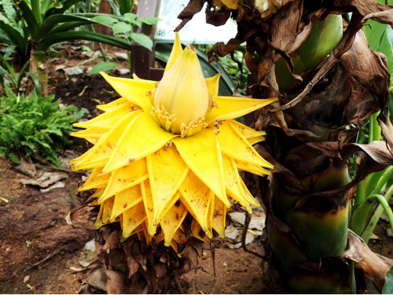 地涌金莲是芭蕉科地涌金莲属多年生丛生草本,原产于中国云南。地涌金莲在开花时期,一眼望去,那一座座金黄色的大花序就如地下涌出的朵朵金莲花,故名“地涌金莲”。