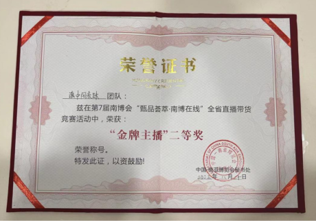2023年8月6日至20日 ,在昆明市举办的第7届南博会“甄品荟萃·南博在线”全省直播带货竞赛活动中,楚雄州第二届电商直播大赛最佳带货一等奖获奖者滇中阿表妹战队凭借出色的表现以及优秀的直播技能和专业的产品知识,从全省众多优秀参赛队伍中脱颖而出,成功斩获第7届南博会“金牌主播二等奖”。
