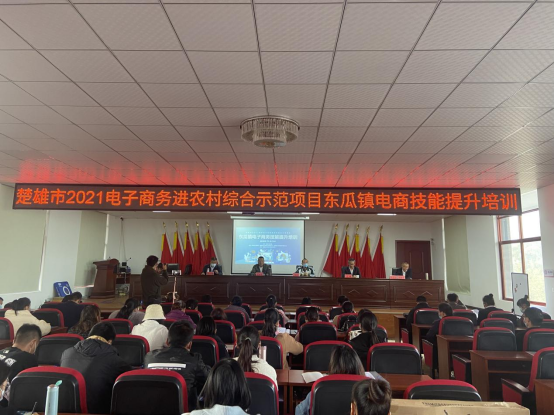 为更快更好地普及电商知识,加大农村电子商务人才培训,切实提高农村电子商务应用能力,2022年11月3日楚雄市2021电子商务进农村综合示范项目乡镇电商技能提升培训在东瓜镇正式开班。东瓜镇经济发展办公室主任王宗才主持、东瓜镇人民政府王跃礼副镇长、市商务局电商中心负责人李杰、东瓜社区居委会副主任刘万明、项目承办企业负责人等出席开班仪式并发表讲话。
