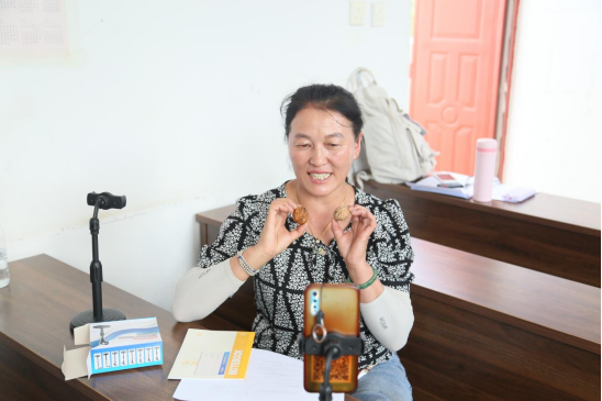 学员罗绍菊表示:她很喜欢看直播,也很想自己开直播,但是苦于不敢开口,这次培训班全体学员共同开播拉链的环节给了她打开直播的勇气,她希望通过直播把自己家的核桃卖到全国各地!