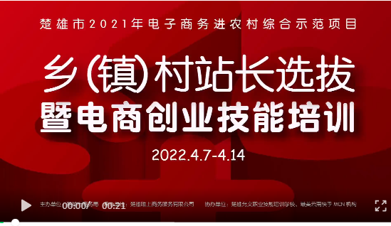2022年4月7日“楚雄市2021年电子商务进农村综合示范项目第一期乡(镇)村站长选拔暨电商创业技能培训”在楚雄州农产品电商供应链创新基地开班。