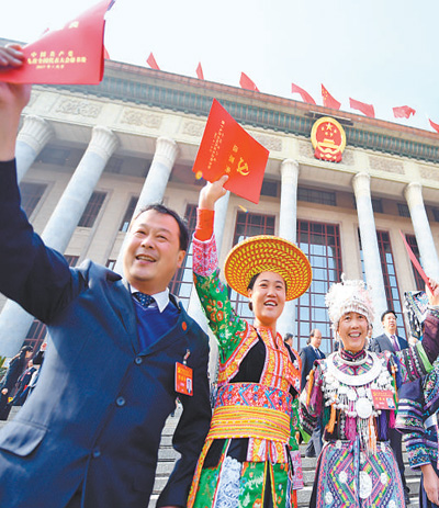 十九大闭幕会后,代表们健步走出人民大会堂。