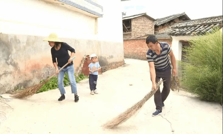 紫溪镇紫金村委会大紫溪村民小组,村民赵万权一家正在清扫村庄道路,赵万权说,他们村小组以户为单位,每天都会组织开展环境卫生综合整治,打扫村里公共区域卫生。