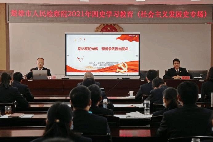 作为开展党史、新中国史、改革开放史、社会主义发展史学习教育的重要内容,8月16日下午,楚雄市人民检察院全体干部职工在局会议室开展了以“铭记党的光辉 奋勇争先担当使命”为主题的四史学习教育社会主义发展史专题学习会,会议由常建伟主持,陶馨罄主讲。
