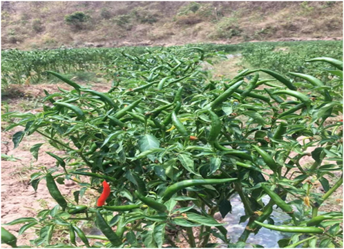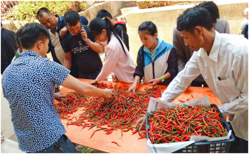 在政府牵头,企业帮带,合作社种植的有效组织下,群众在自家地里也能种出“摇钱树”。通过创新“公司+基地+合作社+农户”和“好品种+订单”生产经营模式,辣椒产业覆盖全镇6个村32个小组,种植规模不断扩大,形成“百花齐放”新局面,形成了村集体、合作社、农户三方利益联结机制。2月份以来,670亩泰国反季油辣椒大量成熟上市,亩产160千克,订单收购价格平均7元/kg左右,预计今年辣椒收入60万元,小辣椒带动了大增收,成为激活村级集体经济“一池春水”。