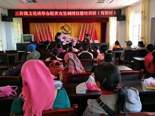 “金字塔”模式开展技能培训。4月份以来,采取“金字塔”模式组织彝绣培训,依托文化站举办2期彝绣技能培训班,分别在11个村委会采取集中培训和入户指导相结合的方式进行技术培训30余场次。目前,全镇已有300余名农村妇女掌握了彝绣技术,完成彝绣作品1000余件,培训效果明显,为发展壮大彝绣产业打下扎实基础。