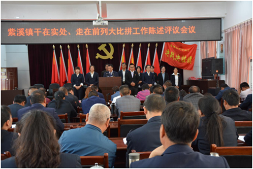14个乡镇、市委政法委、市投资促进局、市工商联等5个部门通过召开陈述评议会议晒任务、亮思路、谈举措、表决心,许下争先诺、立下赶超志。