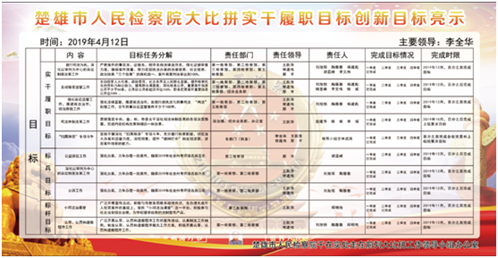 根据楚雄市干在实处走在前列大比拼工作领导小组要求,全市各乡镇、各部门通过召开陈述评议会议、政务公开等方式,积极开展村(社区)、下属单位目标审定和亮示工作。