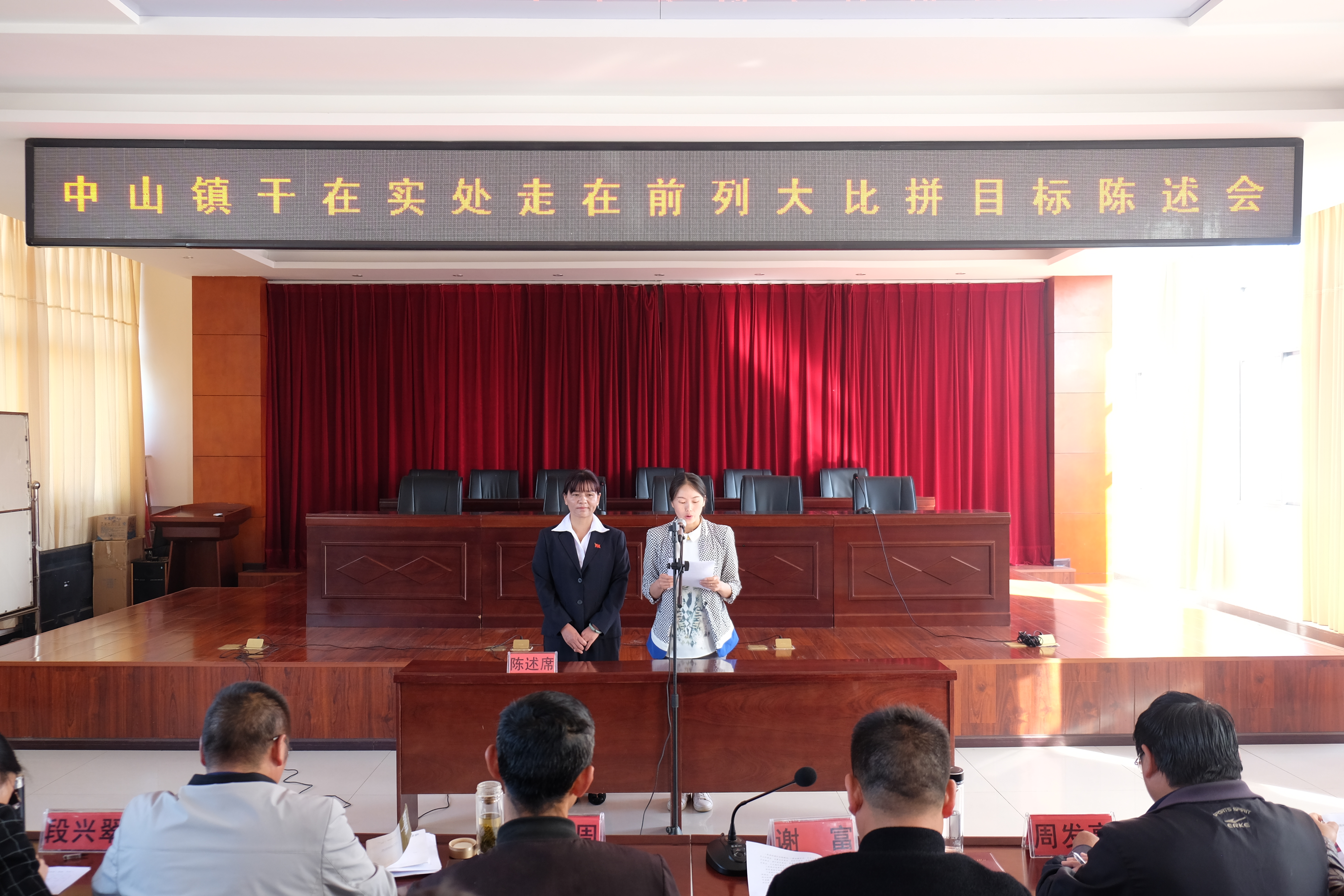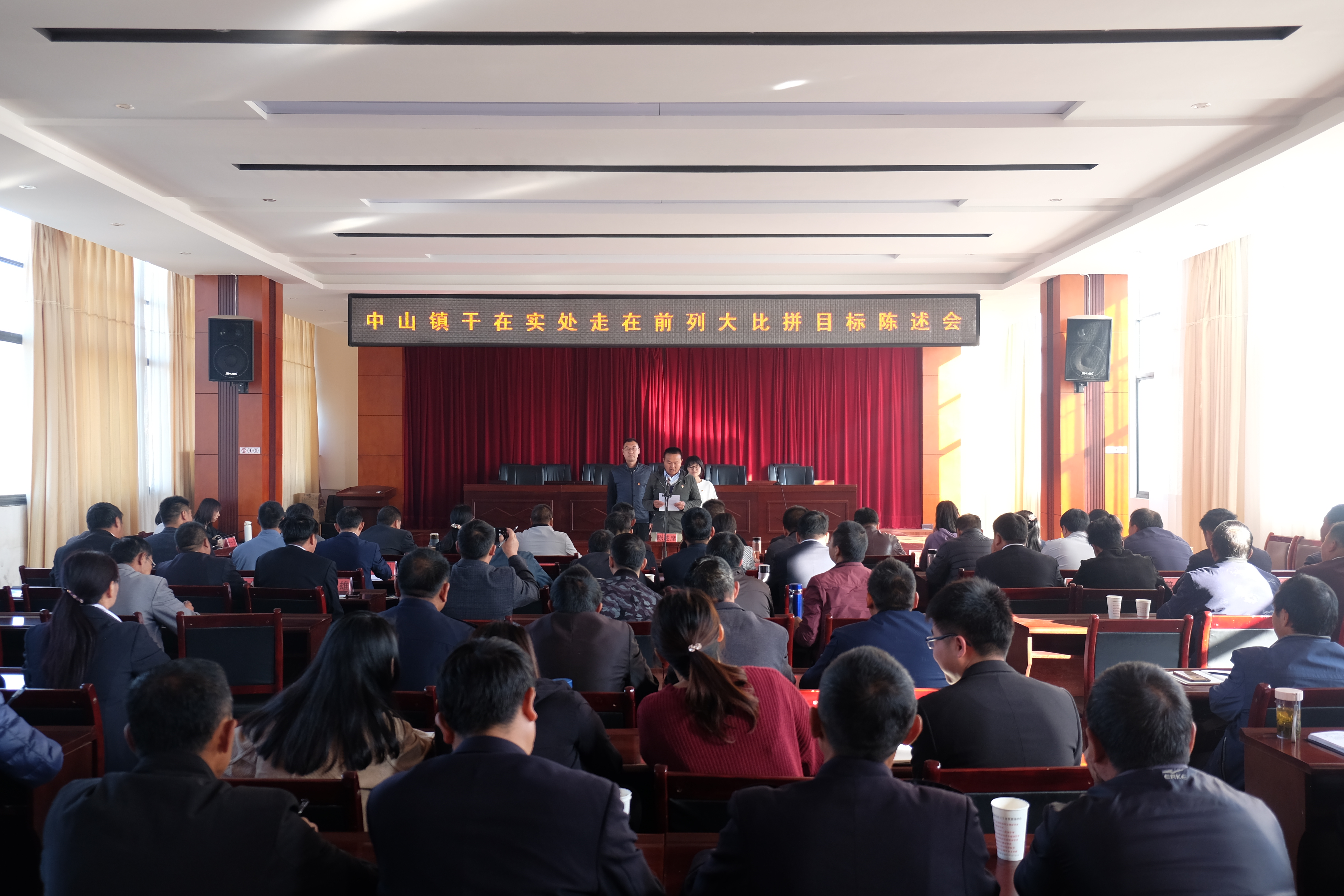 4月11日上午,中山镇召开干在实处走在前列大比拼年初目标陈述评议会议。镇党政班子成员、全体干部职工、村“四职”干部共计110余人参加会议。