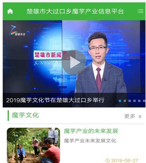 目前平台电脑端及手机端已正常运行,平台共设立彝乡魔芋、供求信息、种植规范、动态信息、产业数据库等五大板块,用户可在电脑端及手机端浏览楚雄市大过口乡魔芋产业信息平台上发布的信息,并进行电商线上线下交易。