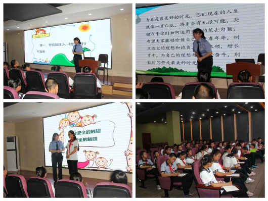 模拟法庭结束后,市人民检察院检察官邱明艳讲解 “我们的身体不容侵犯---远离性侵害”为主题的法治课,利用制作精良的PPT课件、生动有趣的情景再现、诙谐幽默的语言向大家讲解了“哪些行为属于性侵害,遭遇侵害时应该怎么办”等有关知识,引导现场学生积极发言,主动参与互动。