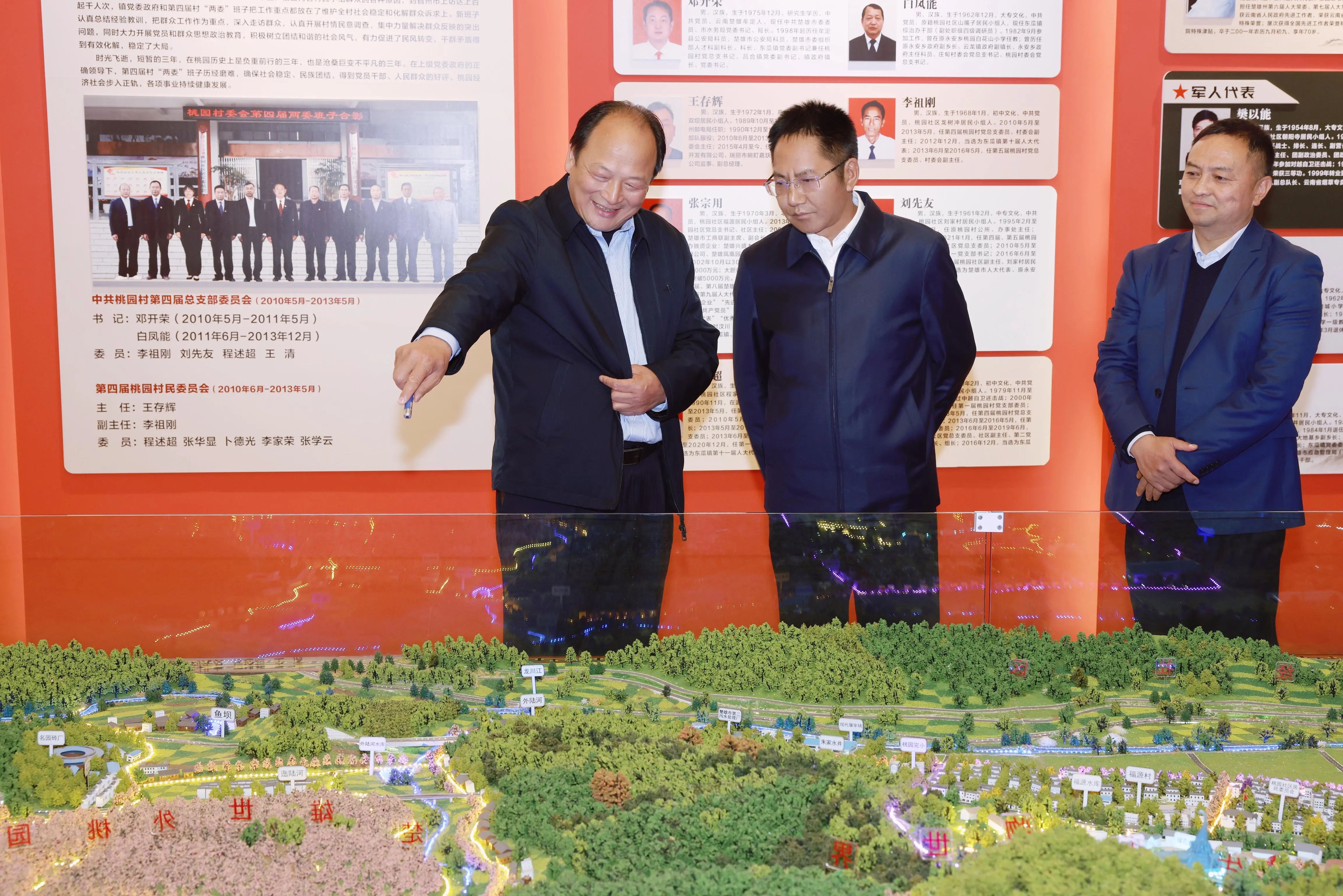 在东瓜镇桃园社区,张文旺调研了哀牢山·楚雄野生动物世界项目概念性规划情况、楚雄老君山乡村振兴生态示范园建设情况等。他强调,要依托大滇西旅游环线,充分利用文化资源、产业资源优势,结合“生态+文旅”的产业互动,以生态筑牢底色、以文化赋魂、以科技赋能、以产业活城,助力楚雄成为绿美城市新典范。